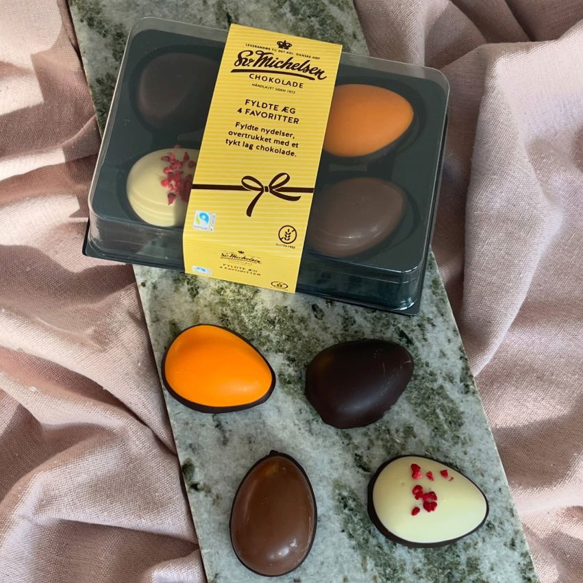 Sv. Michelsen Chokolades populære håndlavede store fyldte æg - nu i samme bakke som vores mini flødeboller og petit fours.